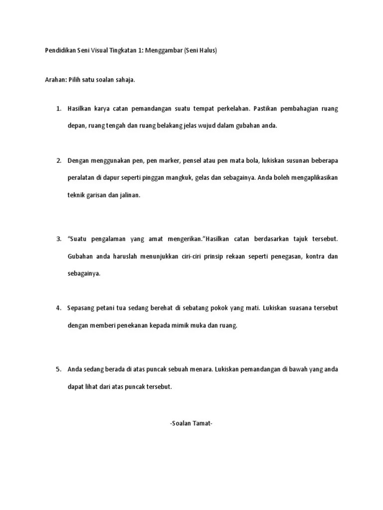 Koleksi bank soalan ujian akhir tahun pendidikan seni visual tingkatan 2 kssm.